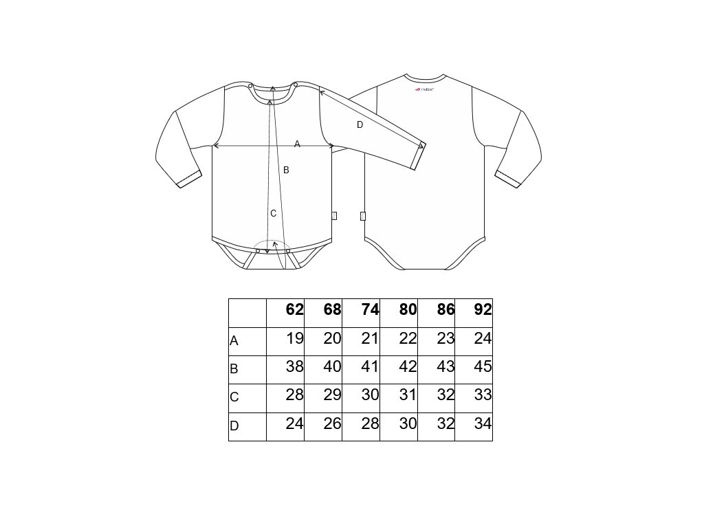 celou dobu nosenia. Body s dlhým rukávom je vhodné na jesenné, zimné a jarné