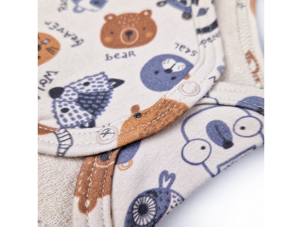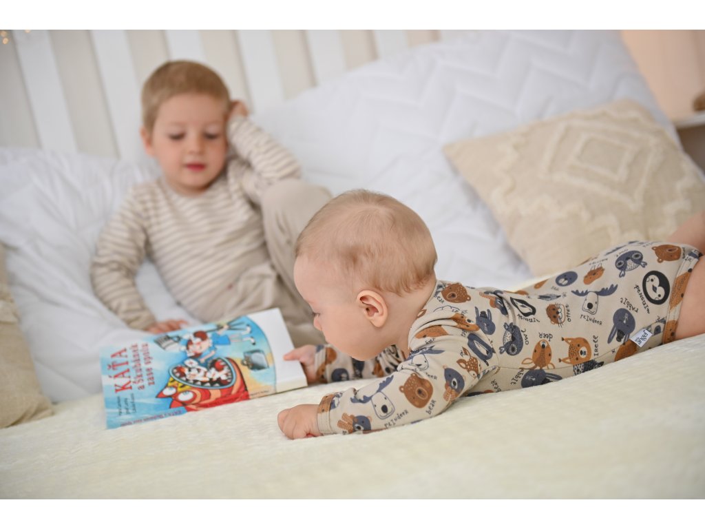 Zapínanie na cvoky je iba v rozkroku body. Vďaka tomu je skvelé do autosedačky,