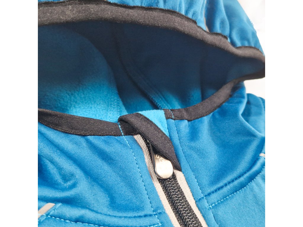 Softshellový materiál je nepremokavý a priedušný. Vďaka materiálu a strihu je