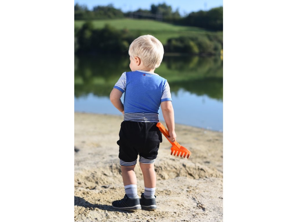 Ohrnutím alebo spustením nápletu v páse môžete regulovať dĺžku šortiek, keď dieťa