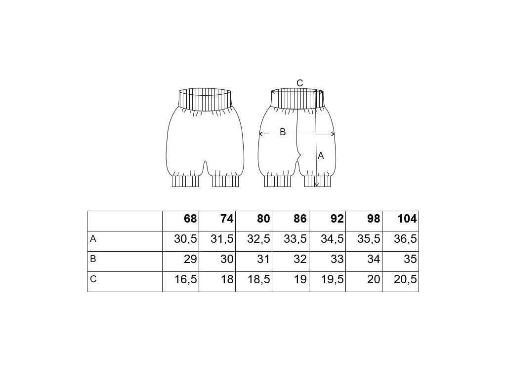- Určené pre deti od veľkosti 68 do veľkosti 104