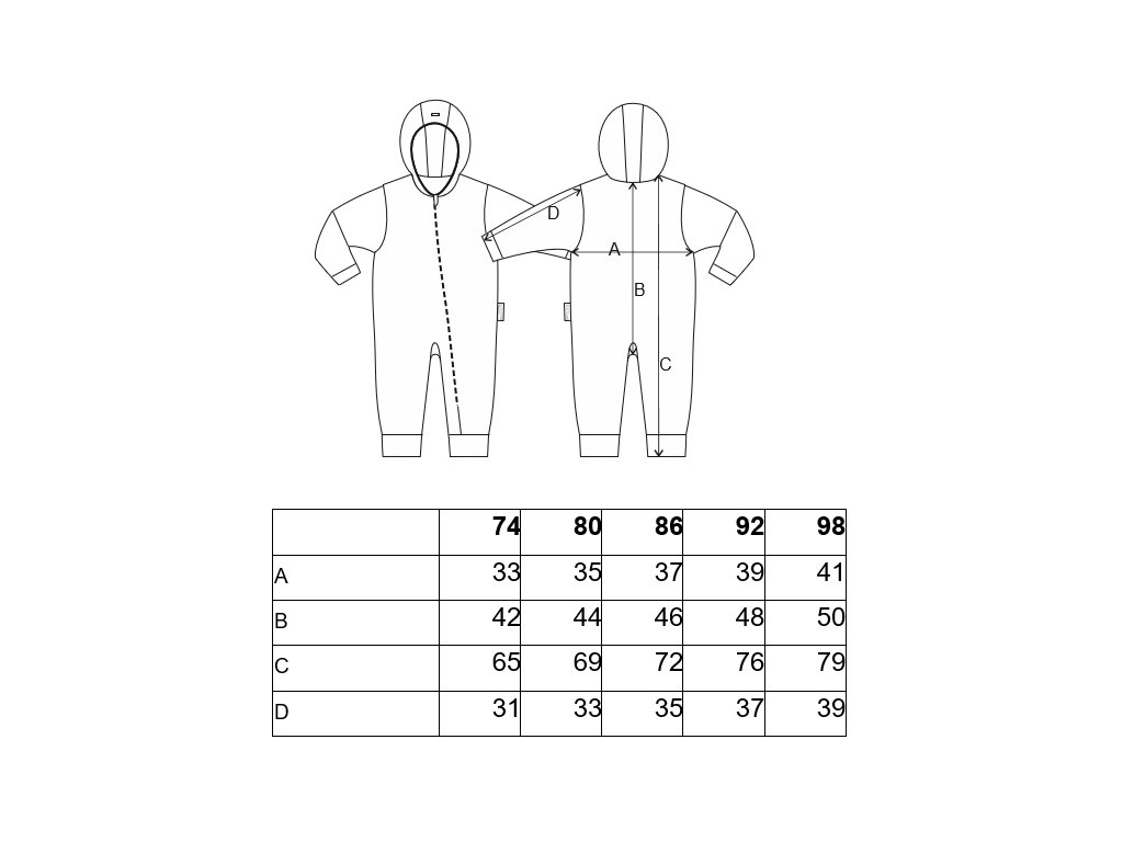 otlačenia pokožky. Zips je po celej dĺžke overalu, zaručí tak praktické obliekanie.