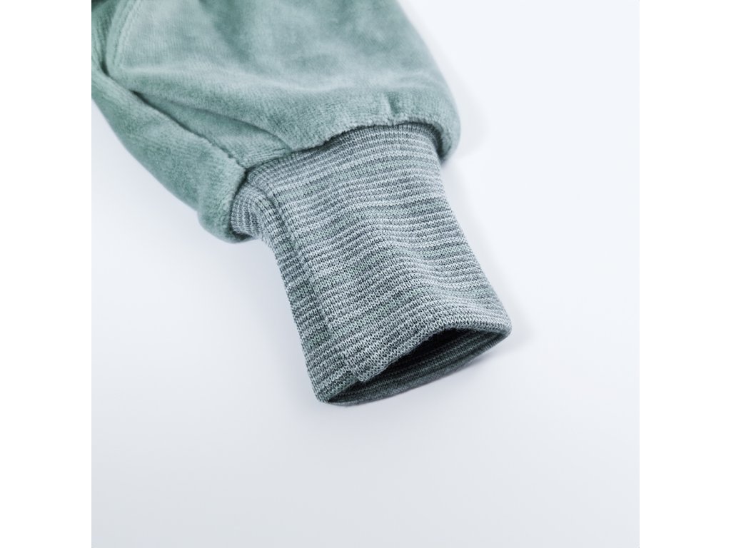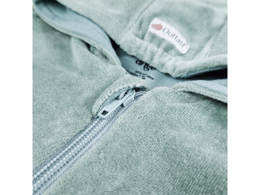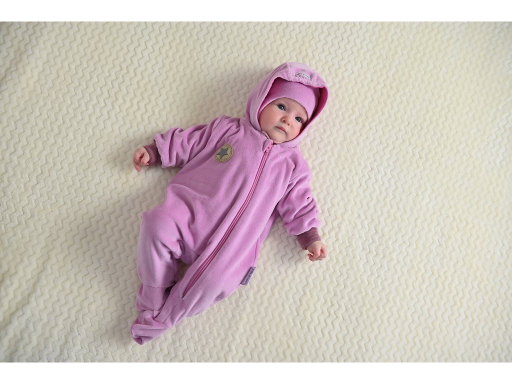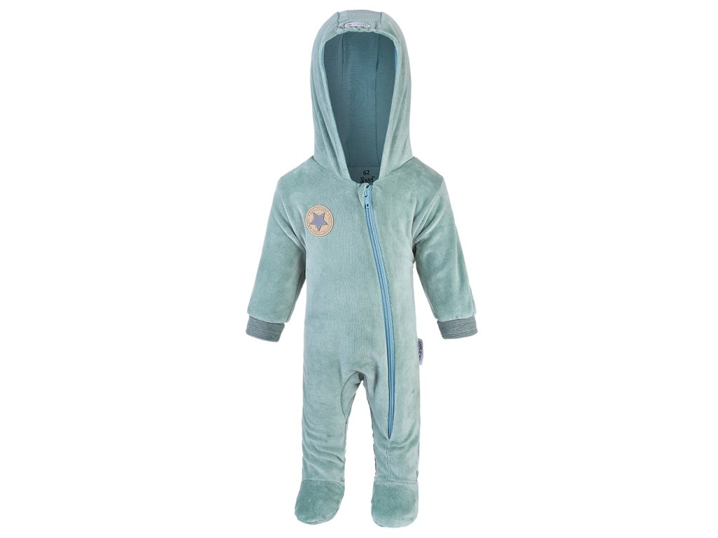 materiálu, ktorý je veľmi príjemný na dotyk. Overal je vybavený kapucou, nohavice