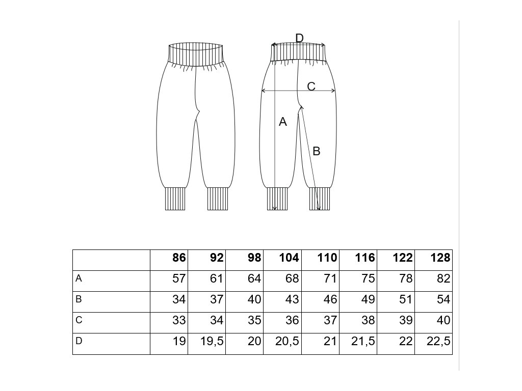 - Náplety možno ohrnúť a prispôsobiť tak veľkosť teplákov výške dieťaťa