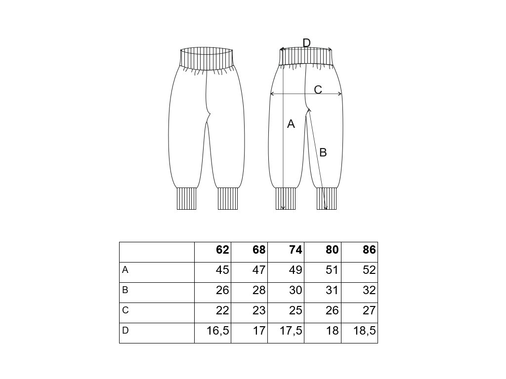 - Náplet možno ohrnúť a prispôsobiť tak veľkosť teplákov výške dieťaťa